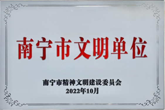 圖為南寧市精神文明建設(shè)委員會為公司頒發(fā)的南寧市文明單位牌匾