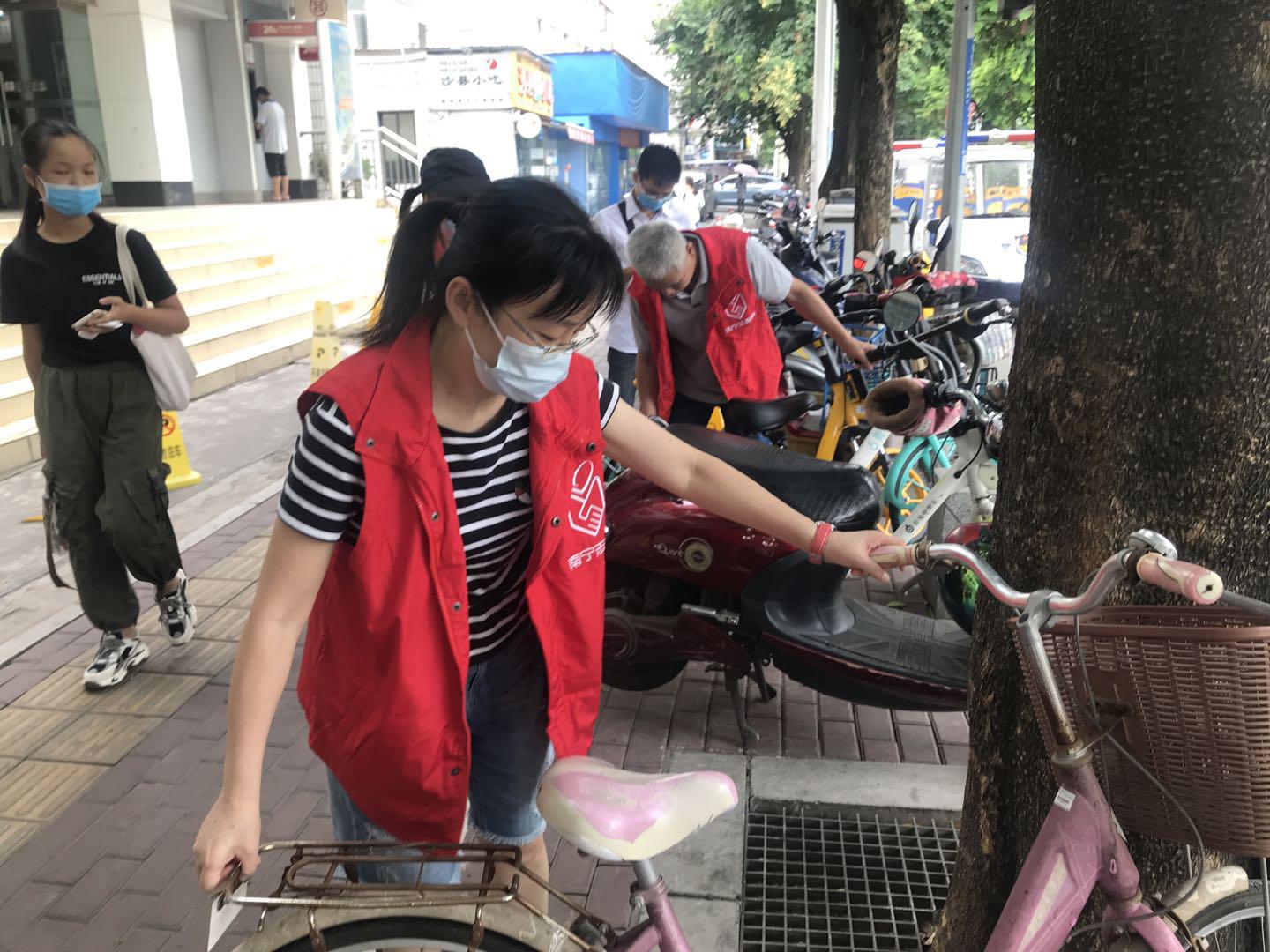 共享單車為居民提供了便利,唱響了綠色出行的理念,然而亂停亂放、隨意毀壞等現象接踵而來,成了靚麗風景線上一抹不文明的色彩。青秀區津頭路口周邊都是老舊小區,道路狹窄,交通擁擠,共享單車隨便擺放的問題比較嚴重。凌鐵水廠的志愿者們充分發揚了不怕臟、不怕累、不怕苦的工作作風,在青秀區街頭開展“”共享單車隨手扶志愿活動”,對主干道出現共享單車扎堆、占道、歪倒的情況,他們會將車扶好,排放整齊,而對于一些零散停放的車,他們便集中搬到一個地方排好。